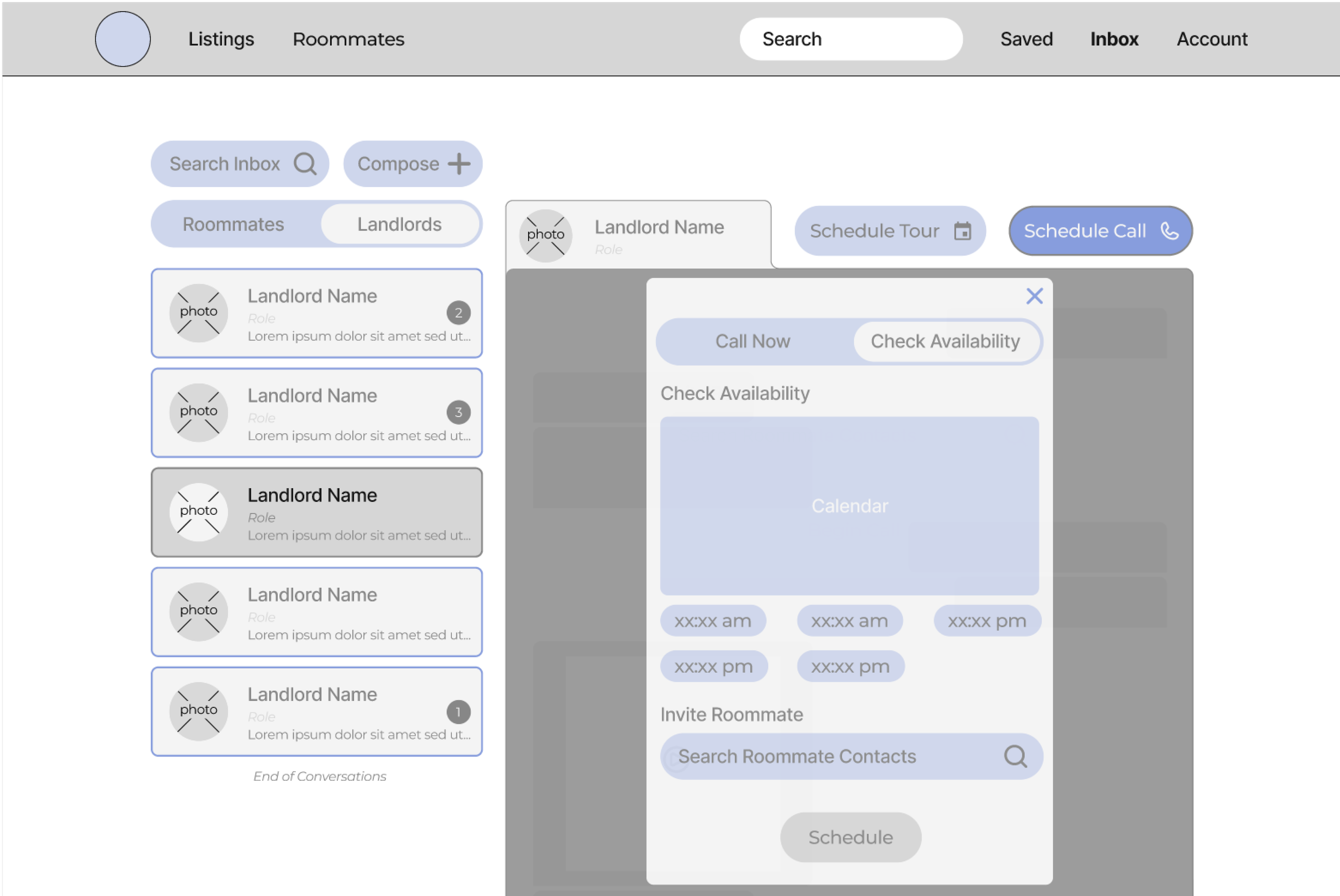 "It's kind of hard to understand the ‘Roommate’ and ‘Landlord’ switchable buttons, maybe there's another way to implement this?" -Usability Test 6