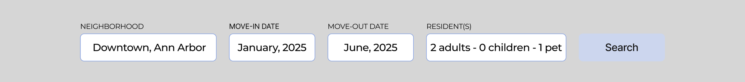 Our approach for the visual design was to create a color feel that is similar to the University of Michigan as the primary audience –tenants– will be students from the university. We selected ‘Fraunces’ for our headers and ‘Montserrat’ for our to have a friendly and welcoming, but professional feel to the site. We ensured our consistency by using a specified page layout with columns.