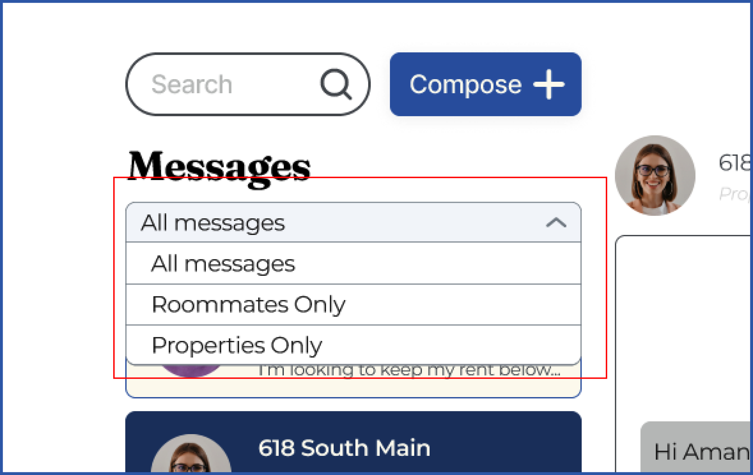 We created a dropdown to organize the messages, creating easier to navigation. This aligns with heuristic principles such as Error Prevention and Flexibility & Efficiency of Use (Nielsen Norman Group)